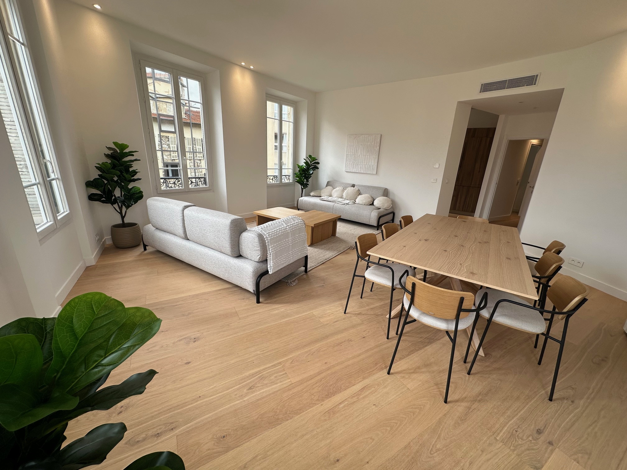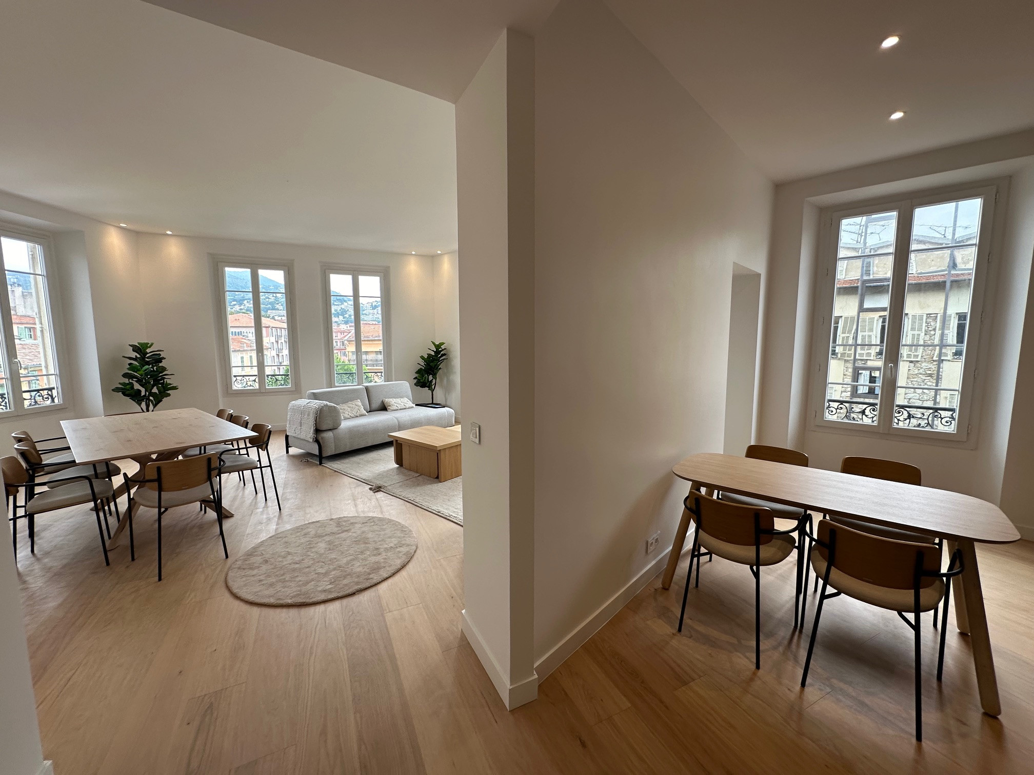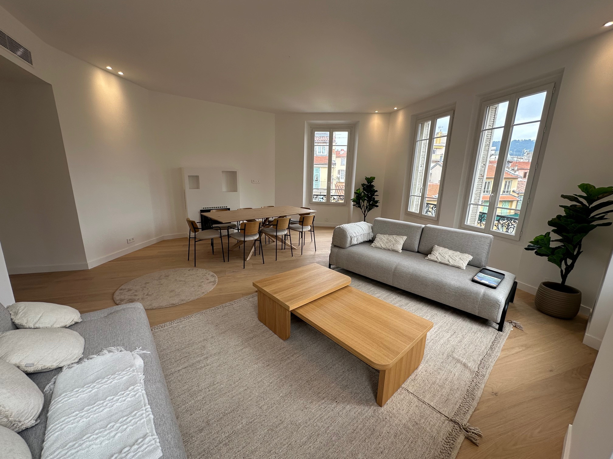 Magnifique appartement luxueux et lumineux, situé en avant dernier étage, très bien agencé, rénové avec des prestations de grande qualité, d’une surface de 137m2. Il comprend : un spacieux séjour / salle à manger avec 5 grandes belles fenêtres, 4 chambres au calme, 3 salles de douche, belle hauteur sous plafond. Situé en plein cœur de la fameuse place du Pin, entre la Garibaldi et le port de Nice, vous pourrez profiter de tous les commerces. Très belle vue dégagée sur la place du Pin ainsi que sur les collines.