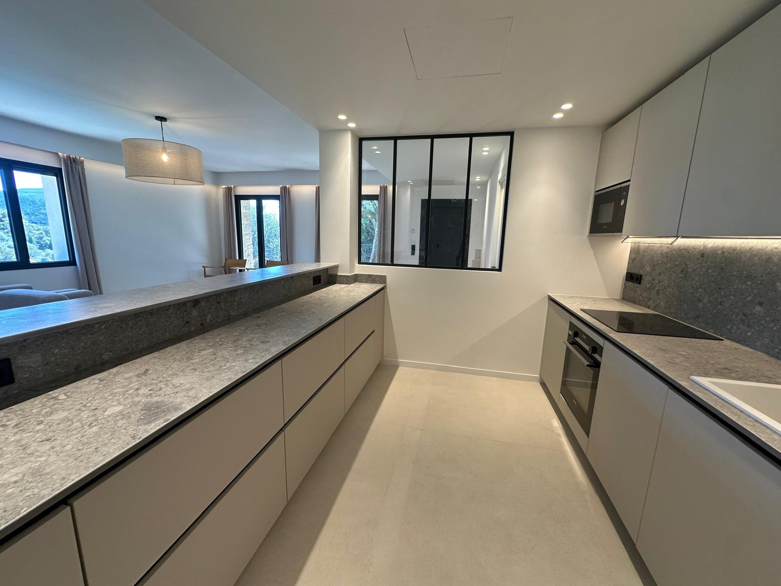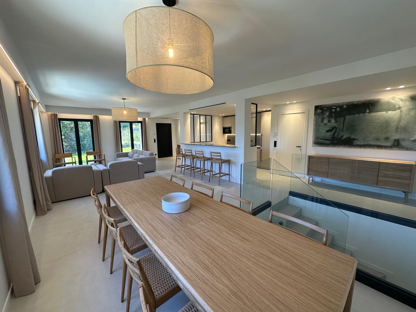 Complètement rénovée avec des matériaux de qualité et des aménagements haut de gamme, la villa se développe sur deux niveaux avec au premier étage un espace de vie de 60m2 comprenant le salon, la salle à manger ainsi que la cuisine équipée, plus deux chambres avec leurs salles de douche.