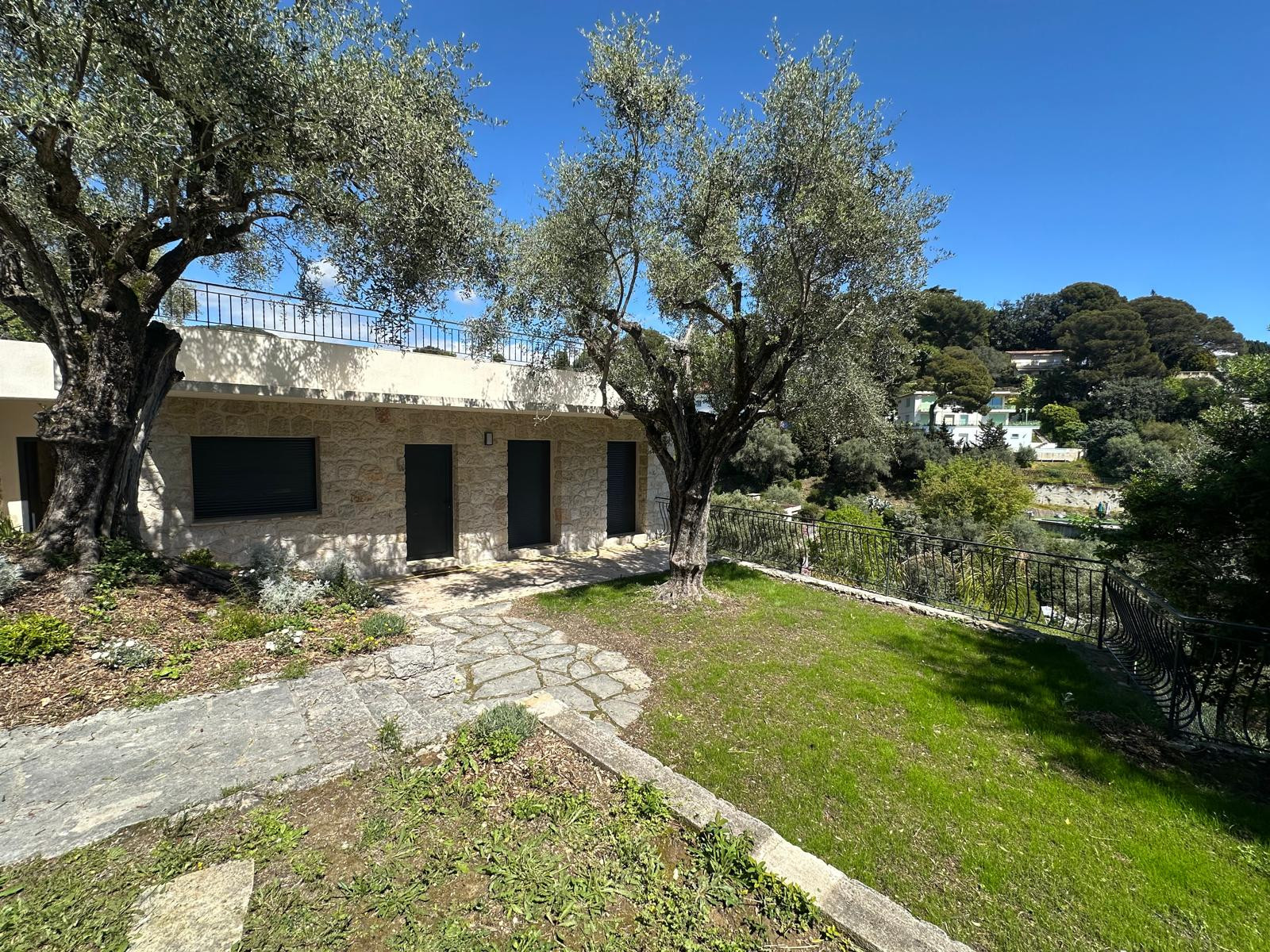 Au Rez-de-jardin un espace intégrant 3 autres chambres avec leurs salles d’eau donnent sur la piscine et le jardin. La propriété a un garage pour deux voitures ainsi que plusieurs places de stationnement. Depuis le domaine la villa a un accès par le haut et par le bas.